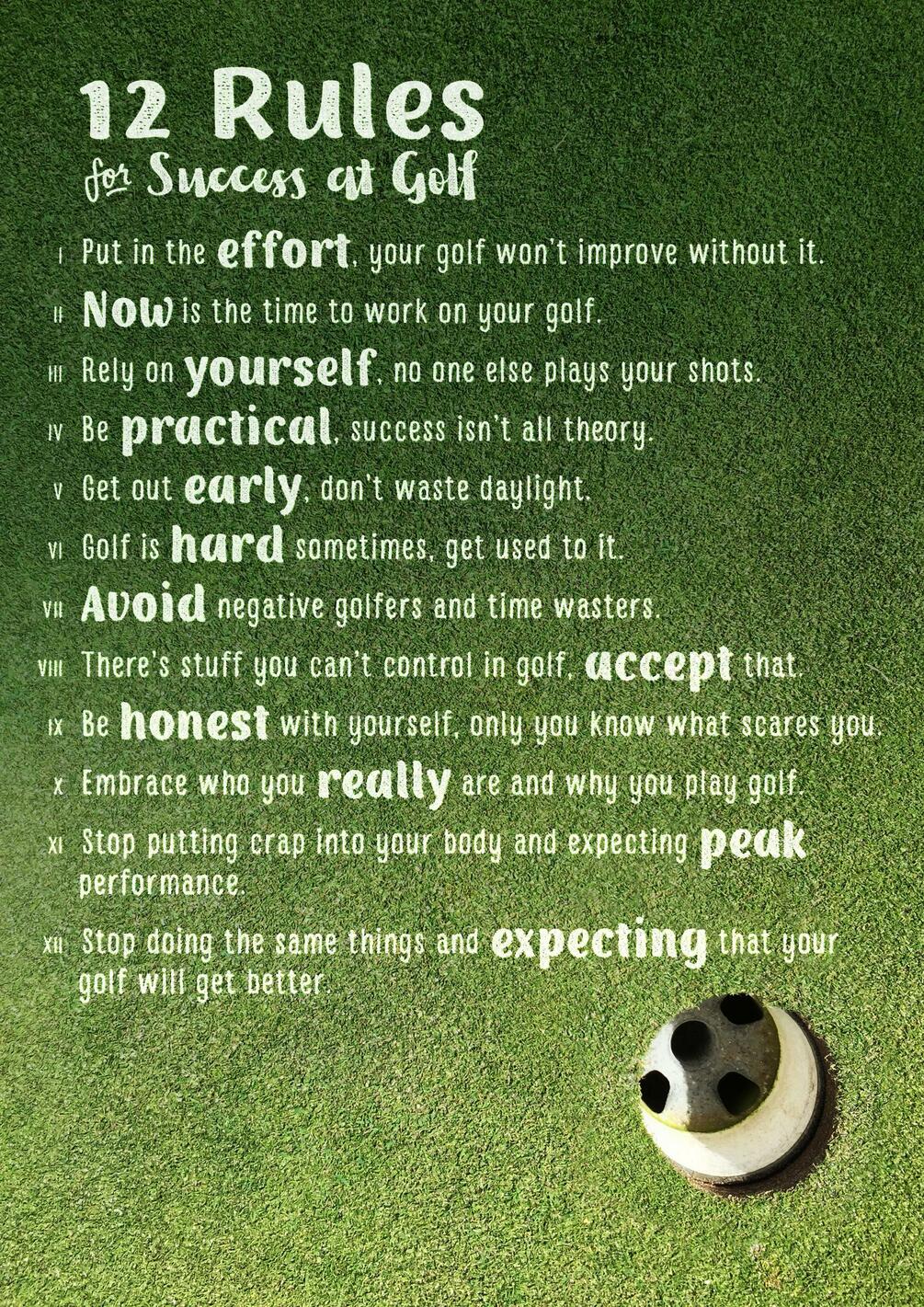 12 Rules for Success at Golf FREE Poster